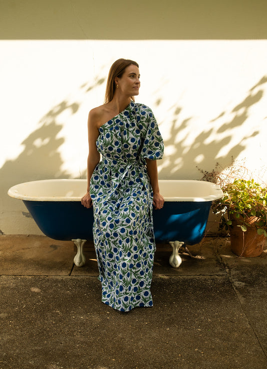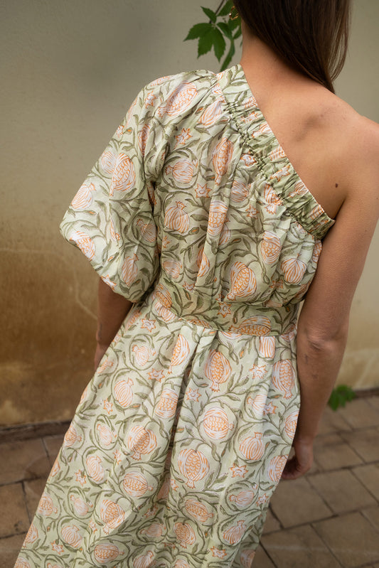 Marcelle One-Shoulder Dress in Chanderi Silk